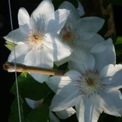 De Wisteria floribunda ‘Snow Showers’ is een wit bloeiende blauwe regen, ook wel witte regen genoemd. Deze Wisteria bloeit uitbundig met witte geurende bloemen in hangende trossen rond juni.