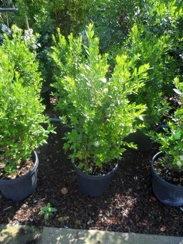 Myrtus communis ‘Tarentina’ is niet geheel winterhard.