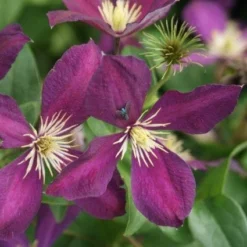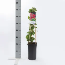 Passiebloem (Passiflora ‘Victoria’) is een klimplant met prachtige bloemen, de Passiebloem ‘Victoria’ heeft een paarse bloem, met een witte kroon en groen/paarse stampers. De Passiebloem ‘Victoria’ is, net als andere soorten uit de Passiflora familie, een goede klimmer die met de jonge scheuten zich om de leidraad, pergola, of takken van andere planten wikkelt en zich na voldoende houvast met grotere scheuten om deze houvast hecht. De Passiebloem ‘Victoria’ heeft een standplaats nodig met volop zon, en zal zijn zonnige plek belonen met een uitbundige bloei. De passiebloem kan tot 3 meter hoog worden. Bij gebruik langs een schutting of andere afscheiding is het aan te raden 3 planten per strekkende meter te gebruiken om een mooi vol resultaat te bereiken. De Passiebloem (Passiflora ‘Victoria’) is matig winterhard en kan tot -6 graden Celsius goed overwinteren. Het kan gebeuren dat bij lagere temperaturen de plant tot dicht boven de grond invriest. De wortels zullen echter pas bij strenge- tot zeer strenge vorst kunnen invriezen. Dit kunt u voorkomen door bij vorst de grond om de plant af te dekken. De Passiebloem ‘Victoria’ is echter een goede groeier, en zal snel weer mooi in bloei staan.